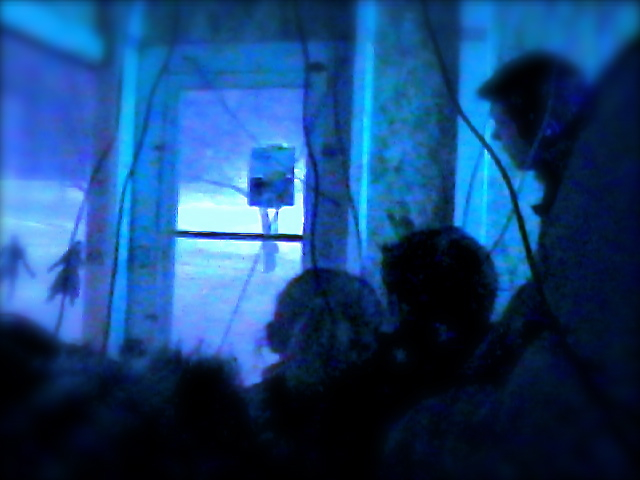 Death by Water is a performance installation that places a listening audience with headphones in a small wooden shed in the middle of a city park in winter. While their visual focus is directed out through a large plexiglass window towards performers moving through the park landscape, their headphones are fed a real-time binaural mix of live and pre-recorded sources – signals from the performer’s (Lucy Simic) wireless microphones, fragments of manipulated found sounds (turntable noises, the voice and shamisen of Japanese-Canadian musician Aki Takahashi, archival recordings of Hibari Misora and binaural field recordings of the park made at various times of the year).